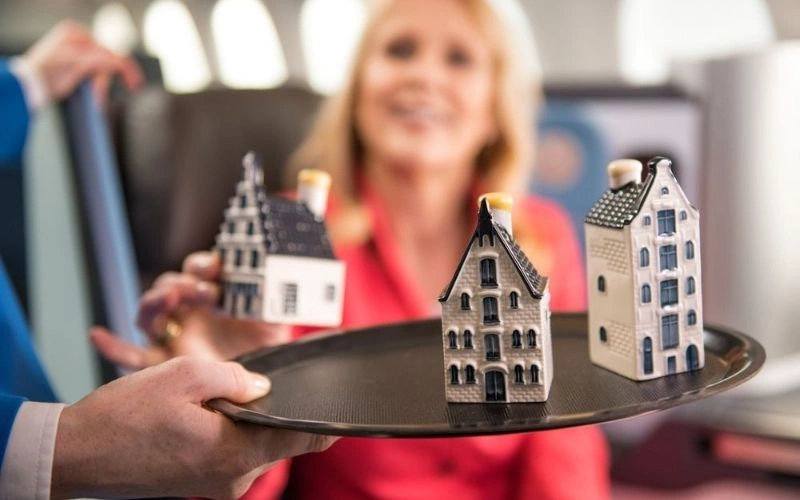 Be welcomed with a glass of champagne or juice upon boarding, along with a complimentary comfort kit featuring personal care essentials and Marie-Stella-Maris facial cream and lip balm. Each traveler will also be presented with a unique collectable gift: a Delft Blue miniature traditional house filled with Dutch gin.